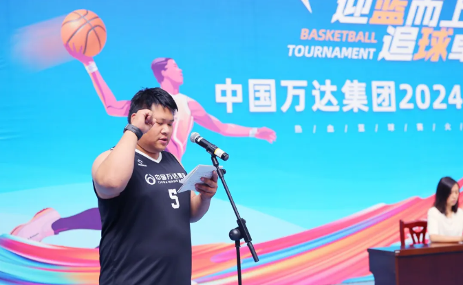 万达集团副总裁郭新军在致辞中表示,举办这次篮球比赛,旨在倡导大家树立“快乐工作、健康生活”的理念,加强身体锻炼,不断增强体质,始终以饱满的热情、昂扬的斗志投入工作,全面展示职工良好的精神风貌。希望参加本次比赛的全体运动员严格遵循体育道德精神,认真遵守比赛规则和赛场纪律,努力拼搏、奋勇争先,赛出风格、赛出水平,通过比赛加深了解、增进友谊。全体裁判员要认真负责、公平公正,努力为运动员提供良好的竞技氛围,保证比赛顺利进行。组委会成员和工作人员要精心组织、热情服务,全力把本次比赛办成一次“文明、热烈、精彩、圆满”的体育盛会。