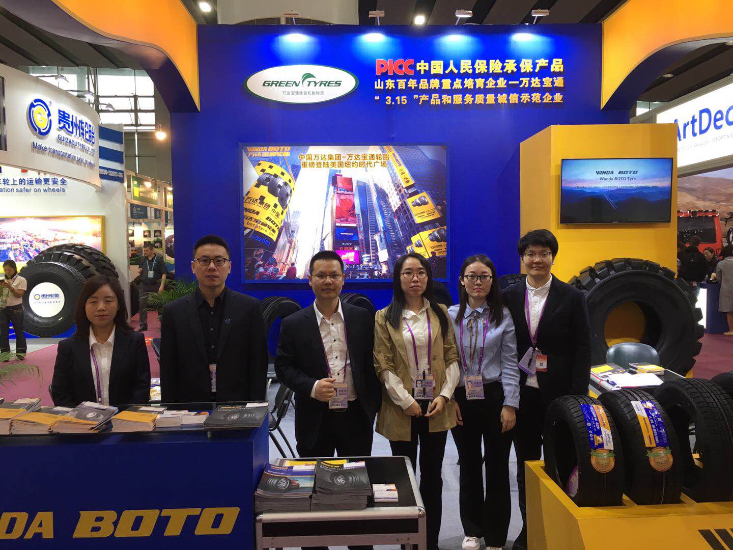 万达宝通轮胎展台搭建延续了以往的黄蓝风格,色彩对比鲜明,重点突出央视上榜品牌、山东省重点培育企业、3·15产品和服务质量诚信示范企业等宣传素材,吸引了诸多客户前来了解。展会期间,橡胶集团业务人员共接待国内外客户100余家。交流中,有部分客户表示感受到企业强大的实力和做品牌的态度慕名而来,非常希望能够与宝通轮胎达成合作;同时橡胶集团业务人员也向客户发出邀请,希望客户能够到工厂进行实地参观。
