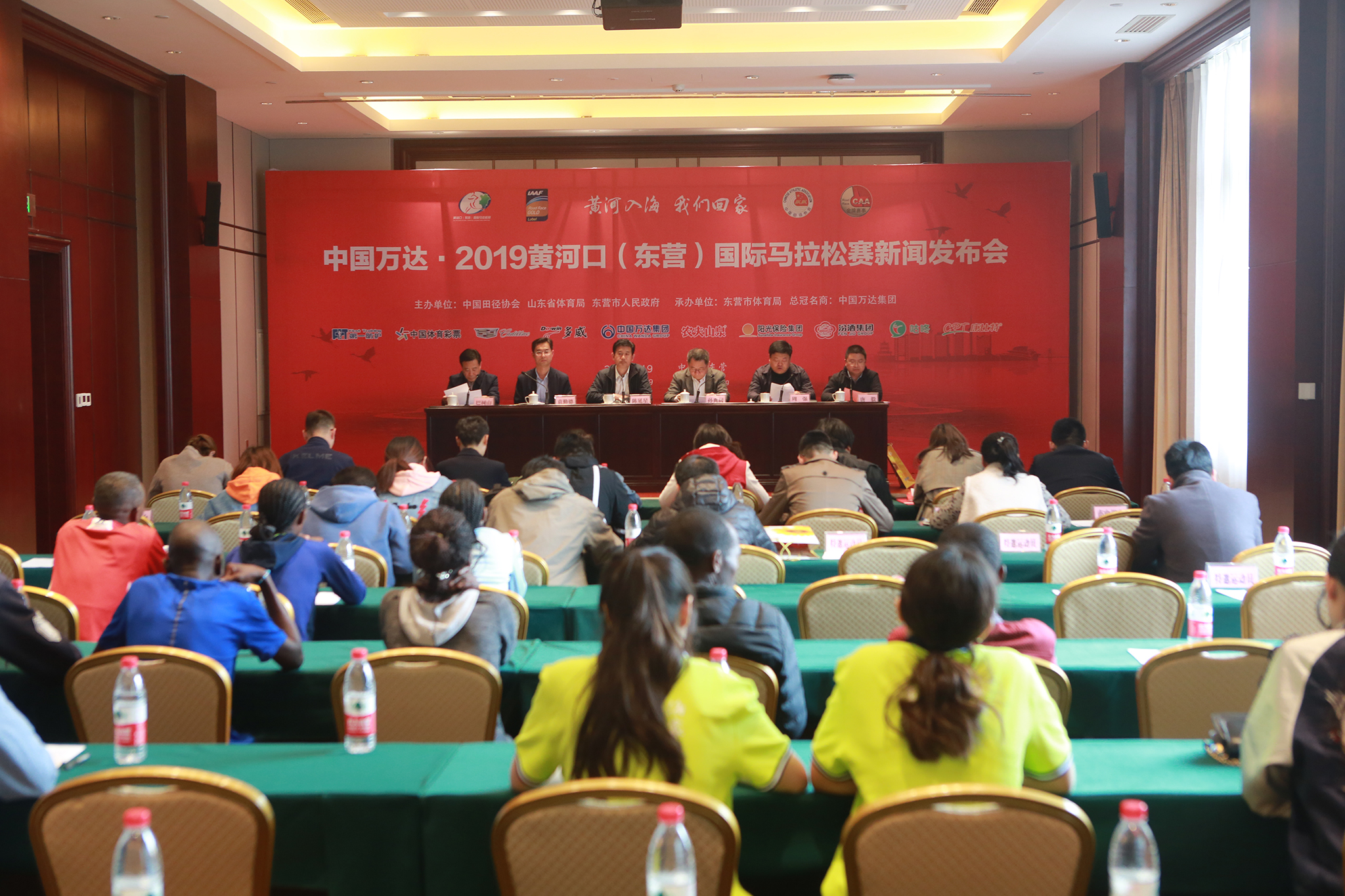 4月19日下午,中国万达·2019黄河口(东营)国际马拉松赛新闻发布会在东营宾馆召开,这是中国万达集团连续十年全球冠名赞助该项体育赛事。发布会上,各有关部门就赛事在组织、电视直播、安全保卫、医疗保障等方面筹备情况做详细介绍,万达集团董事局董事、副总裁巴树山,各赞助商、运动装备商代表、新闻媒体记者及参赛运动员代表参加了发布会。