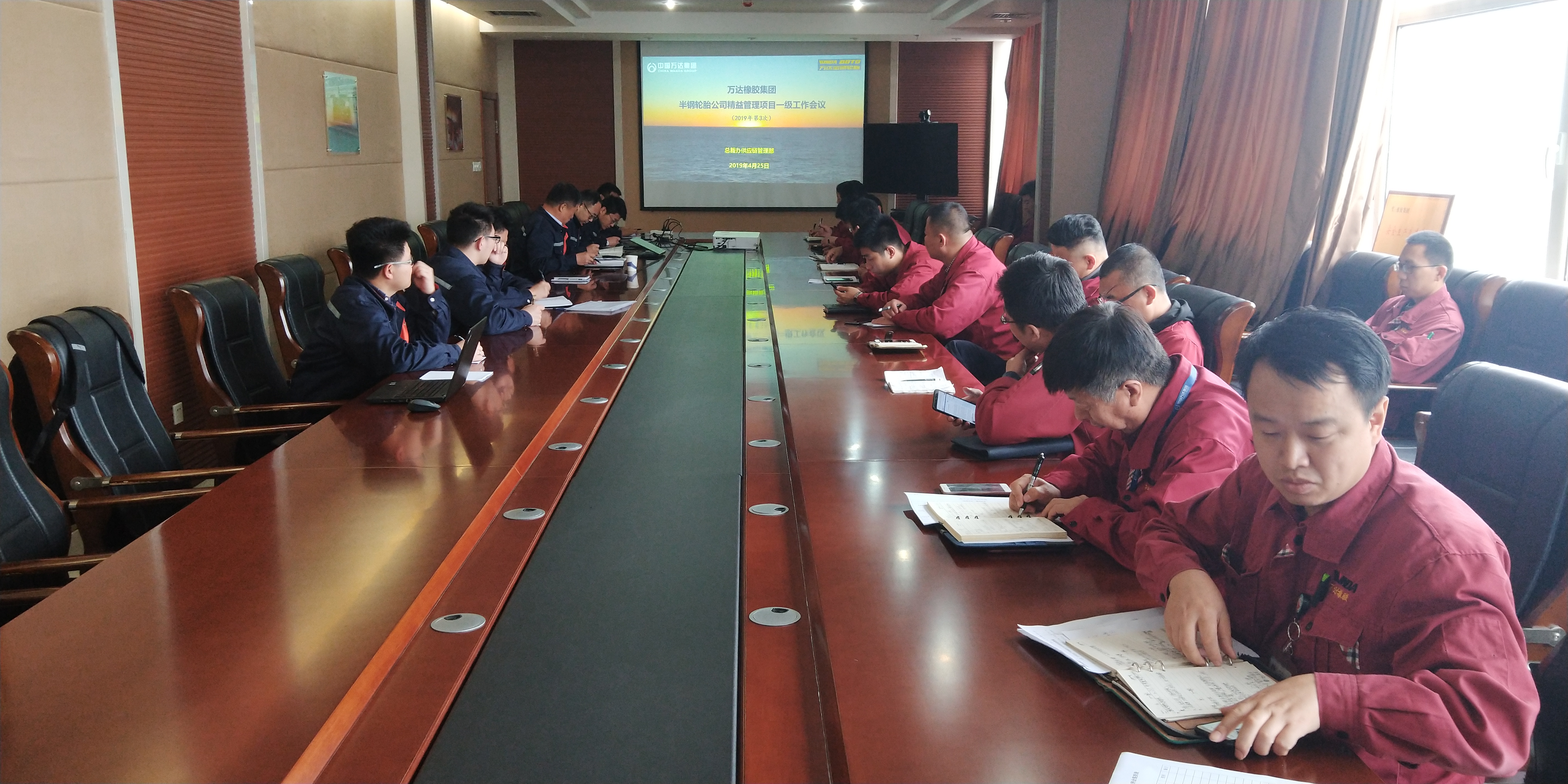 根据内控管理制度《万达集团精益管理项目工作会议制度》要求,总裁办分别于4月24日下午、4月25日上午在炭黑公司、半钢公司组织召开2019年精益管理项目第3次一级会议。集团公司总裁办总经理曲春林、两家单位董事长、总经理、各部门负责人及车间主任以上人员、供应链管理部和发展规划部人员参加会议。